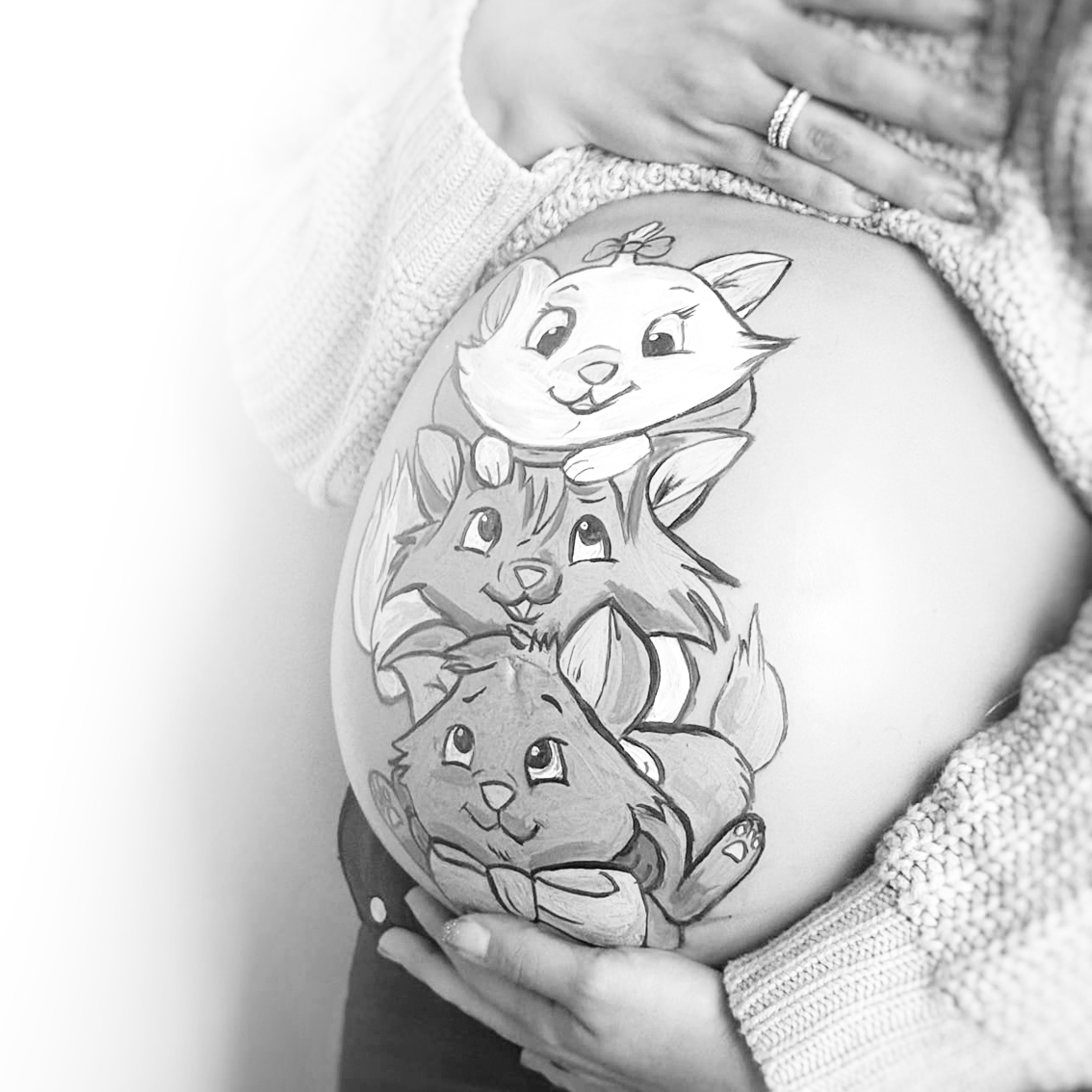 El Belly Painting consiste en pintar la barriga de embarazada con maquillaje corporal profesional, utilizando un diseño totalmente personalizado que tú eliges: desde ilustraciones tiernas y delicadas hasta dibujos coloridos y divertidos.